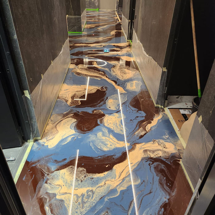 Besiūlė grindų danga, liejama iš epoksido. Ši technologija sukuria itin tvirtą, atsparų ir lengvai prižiūrimą paviršių.