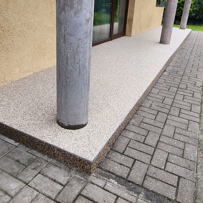 Dekoratyvinė ir itin patvari grindų danga, gaminama iš natūralios kilmės akmenukų bei rišamosios medžiagos.